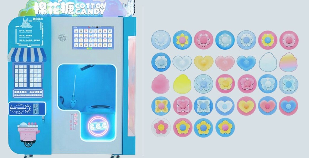 Pamuk şeker makinasında 52 farklı desende üretim yapabilmektedir. Müşteri Ödemesini yaptığında istediği deseni seçip makinamız o desende pamuk şekerini verebilmektedir.