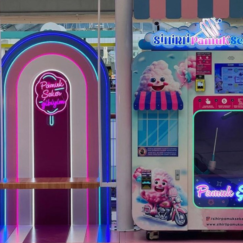 Otomatımız; oyun alanları, alışveriş merkezleri, lunaparklar ve daha pek çok farklı mekânda hizmet verecek şekilde tasarlanmıştır. Sağladığı kullanım kolaylığı sayesinde, kullanıcılar hızlıca kendi pamuk şekerlerini yapabilir. İster büyük etkinlikler, ister daha küçük toplantılar olsun, makinemiz her ortamda tatlı bir dokunuş katmak için ideal bir çözüm sunar.